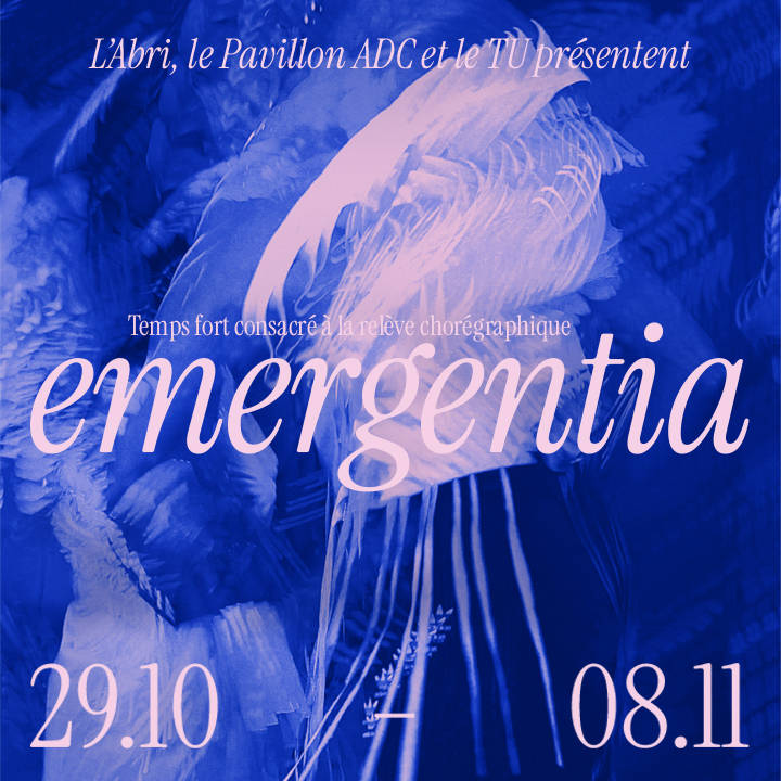 Atelier programmé dans le cadre d’Emergentia – temps fort pour la création chorégraphique émergente réalisé par L’Abri, le TU et le Pavillon ADC – qui a lieu du 29 octobre au 8 novembre.